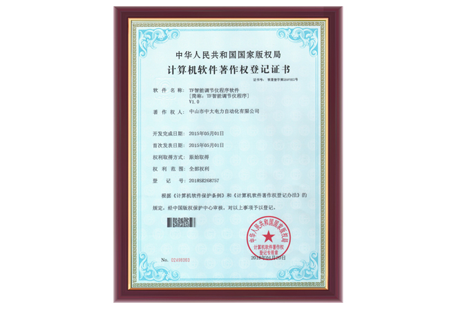 TF智能調節儀程序軟件證書
